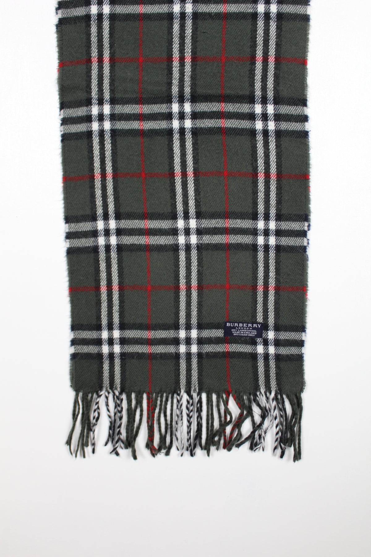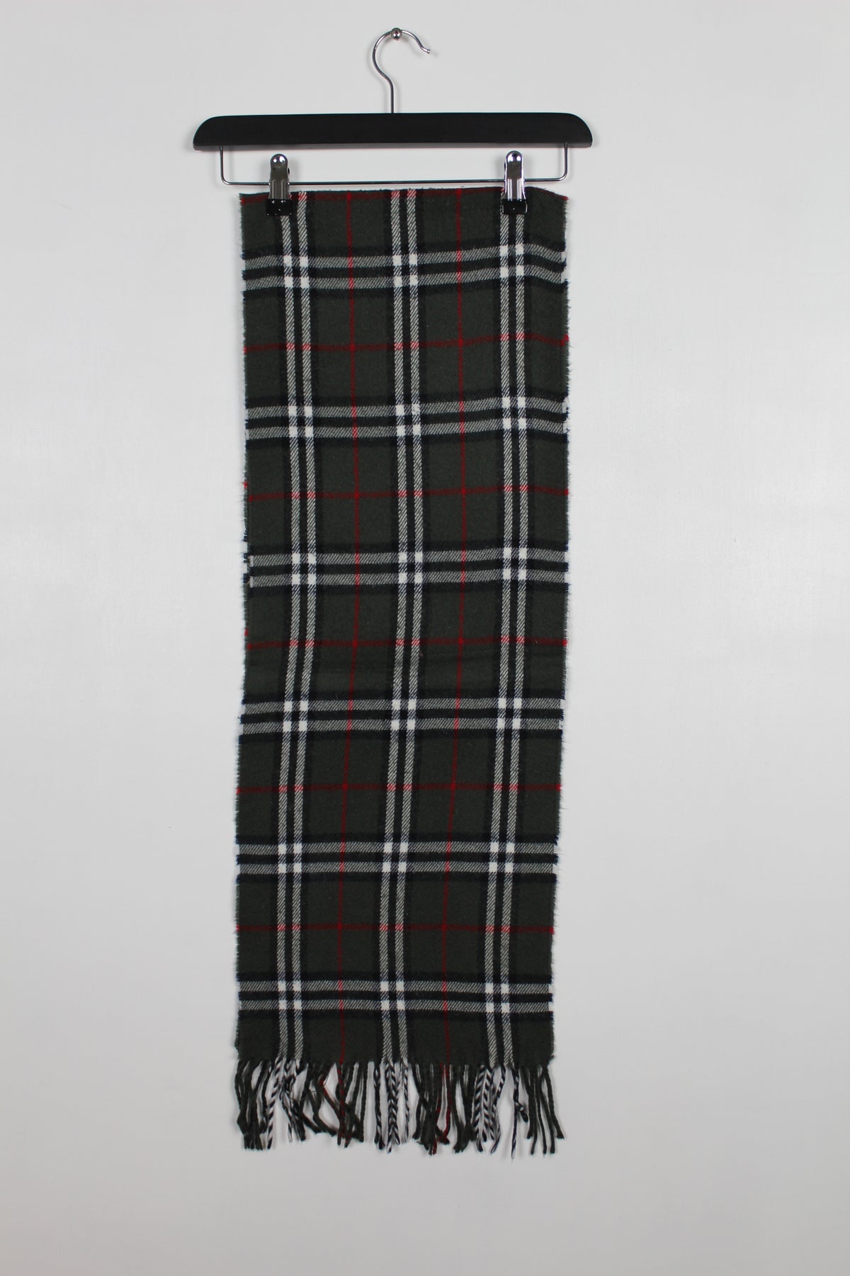 Vintage 90s Burberry Dark Grey Nova Check Lambswool Scarf