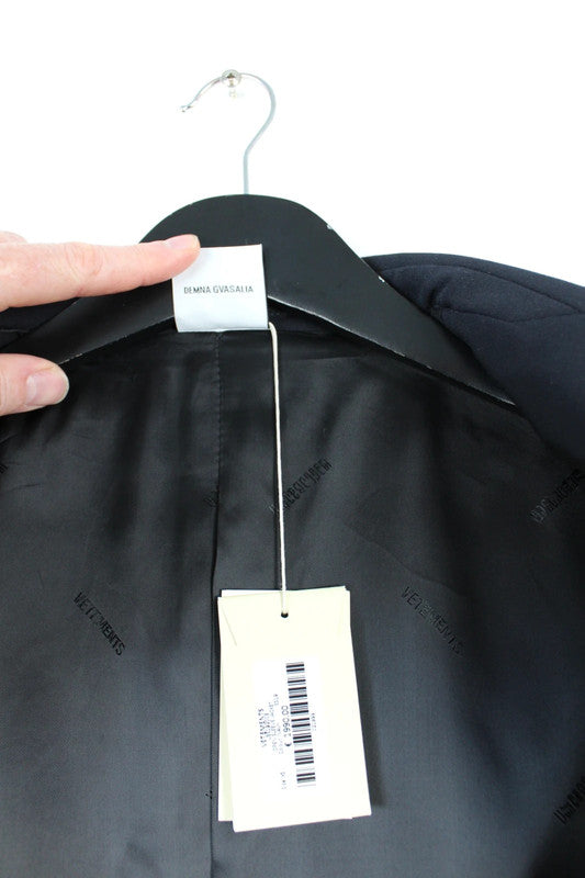 Vetements SS19 Unisex Open Sleeve Navy Double Breasted Jacket XS