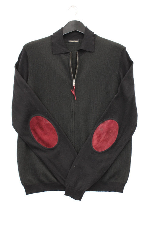 Vintage Holland Esquire Black 100% Merino Wool Knit Jumper Red Elbow Patches