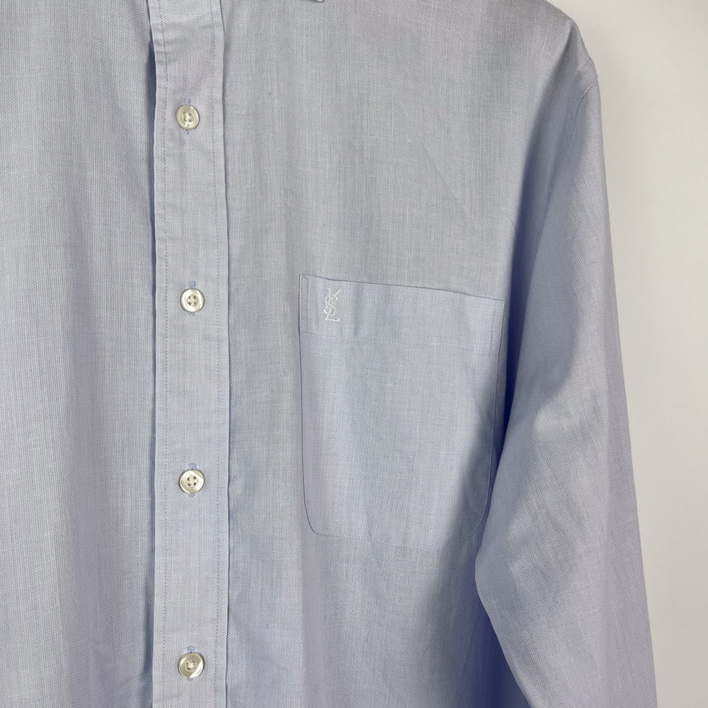 YSL Re/Work Tailored Curved Hem Light Blue Cotton Shirt - L